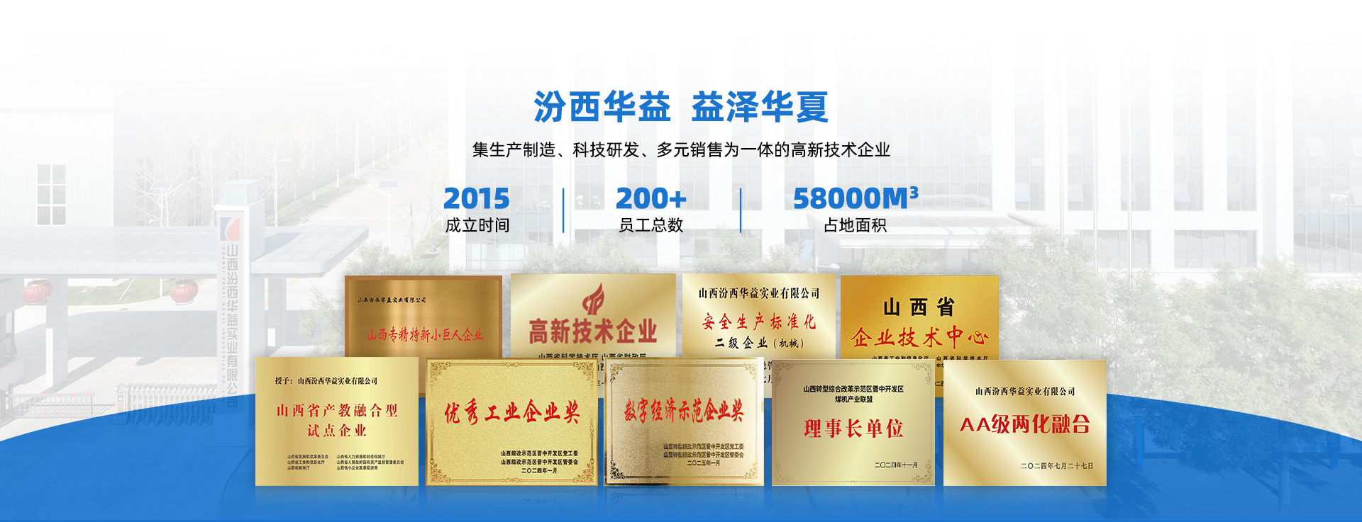 山西汾西華益實業有限公司成立于2015年,注冊資金1億元,地處山西省晉中市山西轉型綜改示范區晉中開發區,占地面積約58000平方米,為山西焦煤汾西礦業集團的控股子公司,是一家集生產制造、科技研發、多元銷售為一體的高新技術企業。